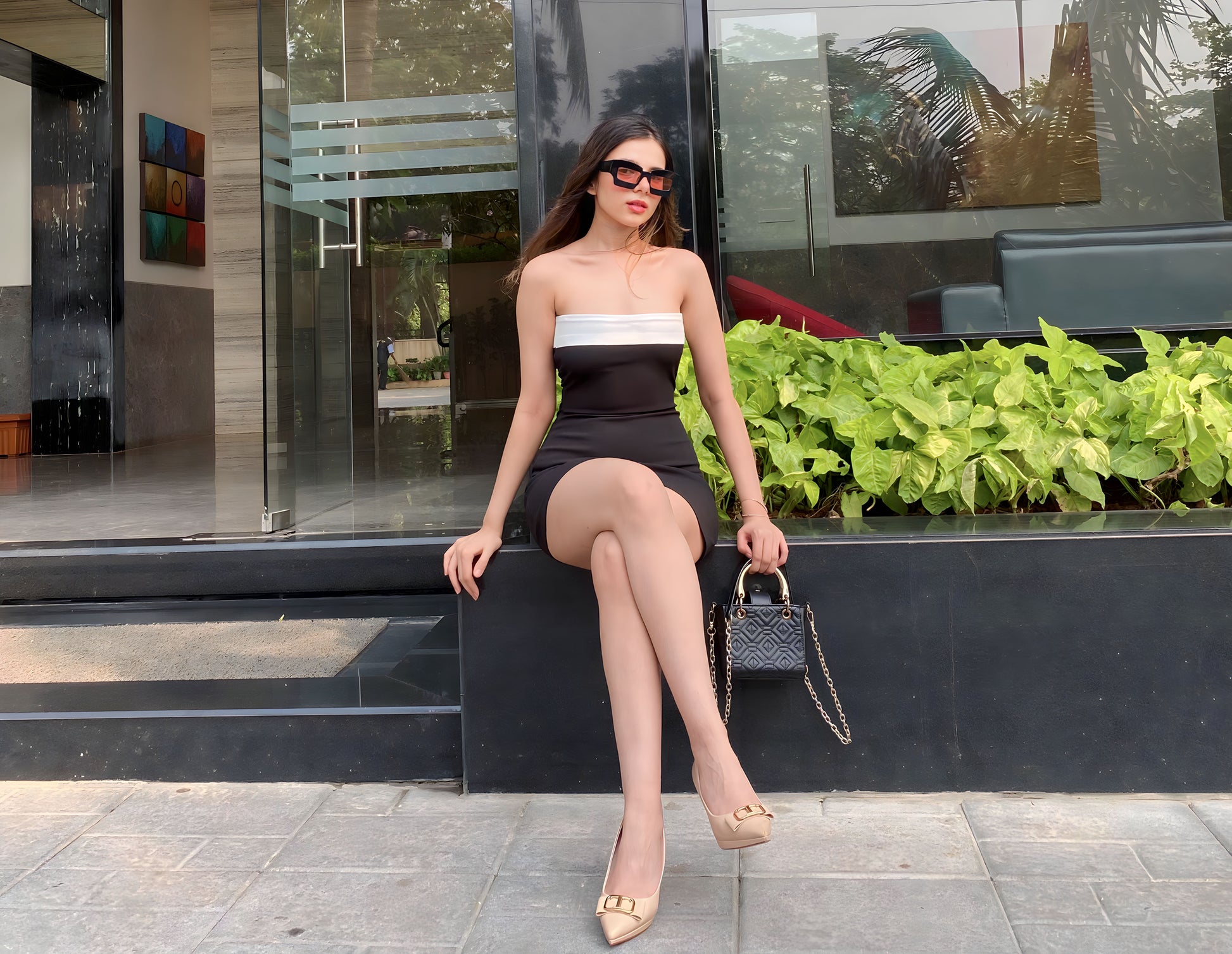 Chic, sculpted, and undeniably elegant — our CHANEL strapless dress channels a timeless Parisian silhouette with a modern edge. Crafted in a luxurious scuba georgette , the bodycon fit flatters your figure while the contrasting white bust panel adds a bold, structured statement. Whether you're stepping out for a cocktail evening or a formal dinner, this piece brings effortless sophistication.