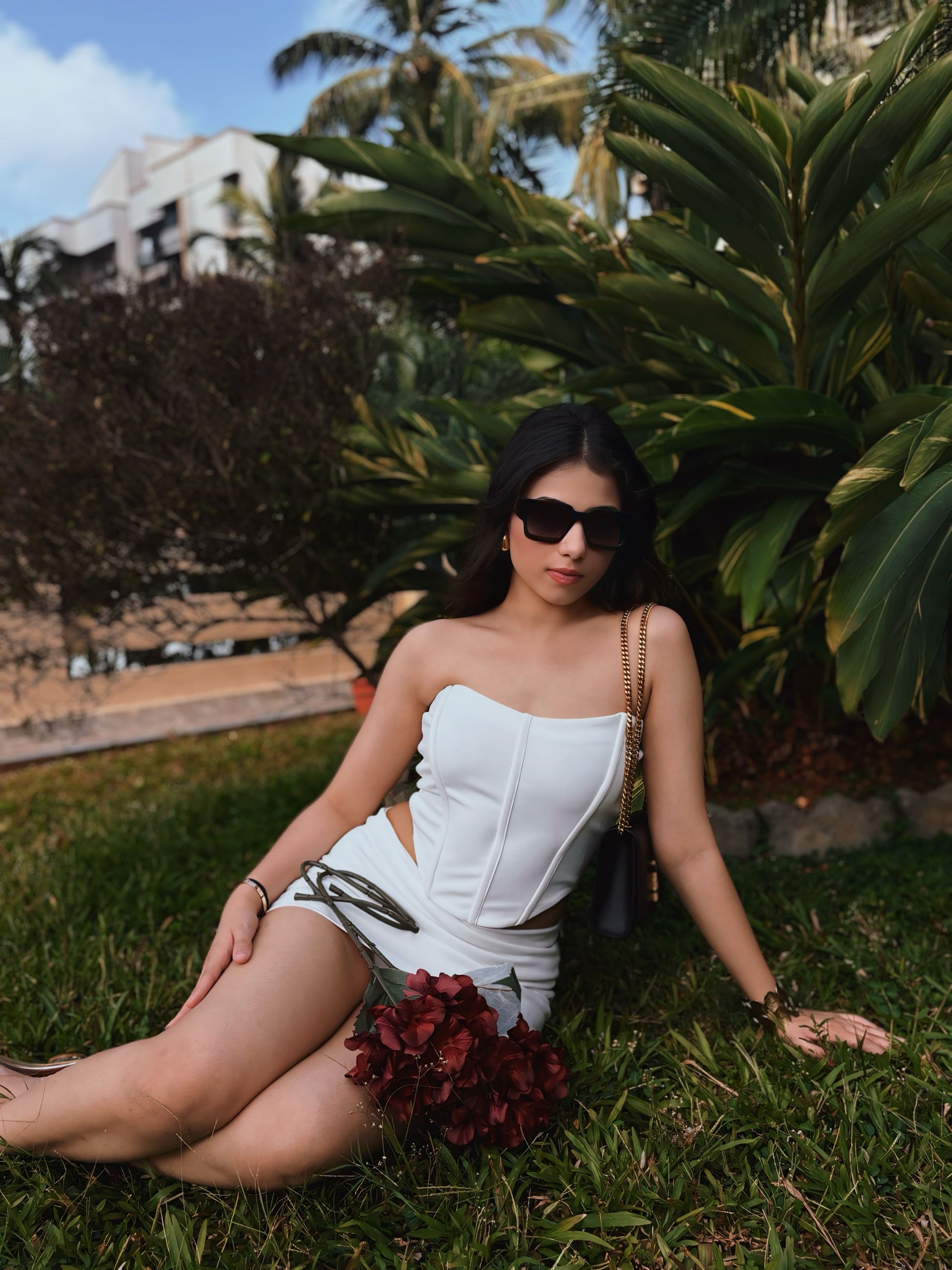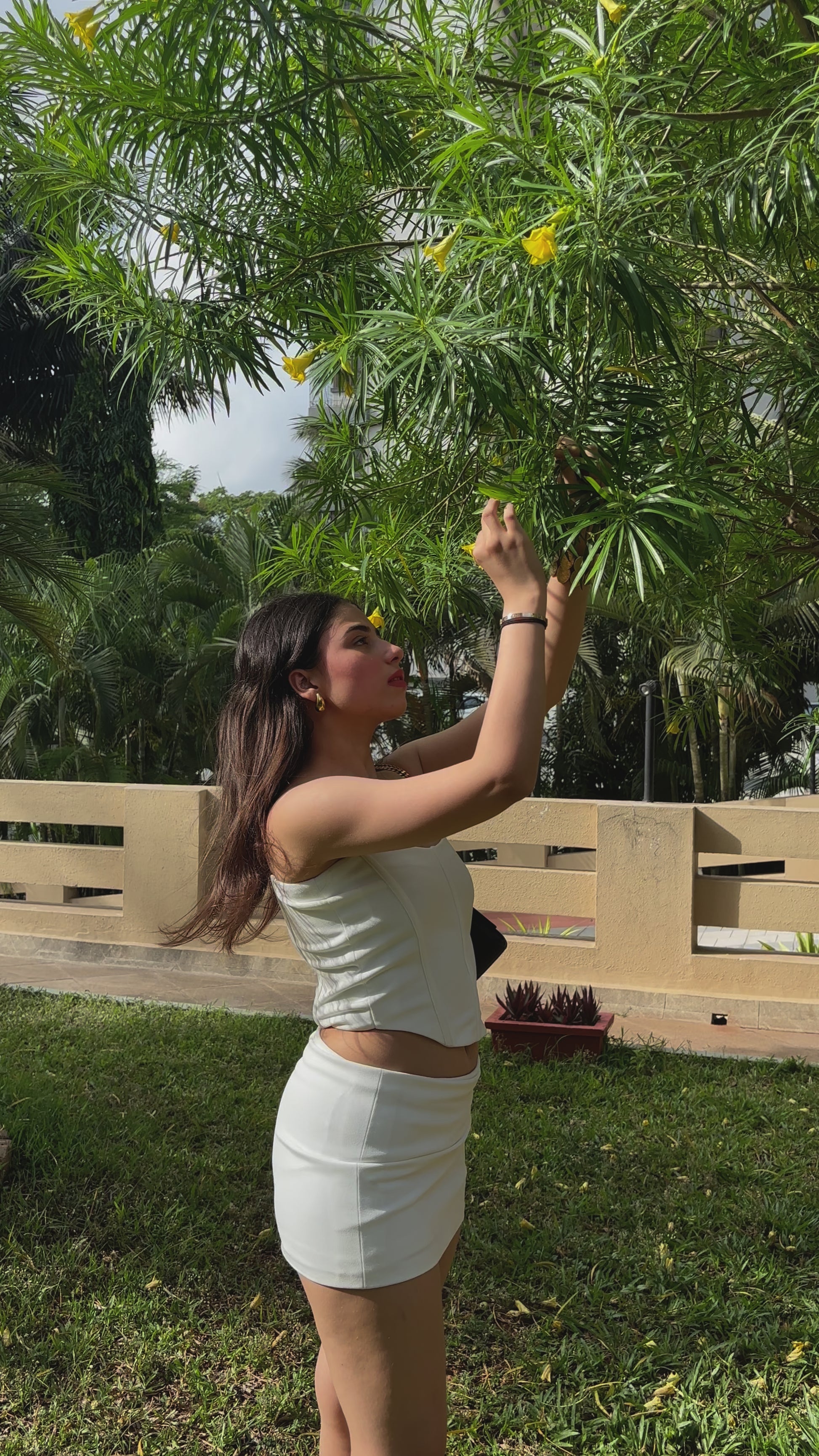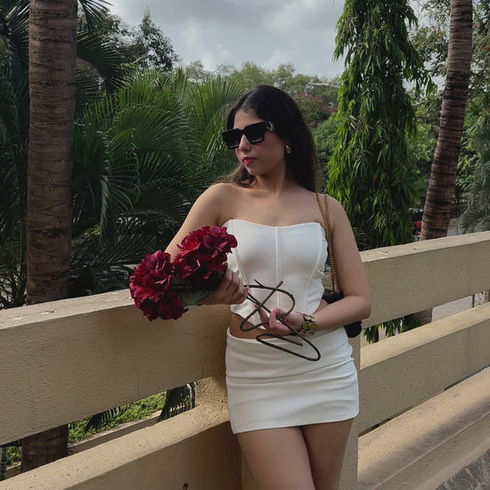 Turn up the heat in our cool-toned Frost Set. This striking co-ord features a structured corset top with sleek boning detail and a matching mini skirt. Designed in luxe scuba fabric, this set hugs your curves while giving structure and comfort — perfect for brunches, birthdays, or tropical escapes.