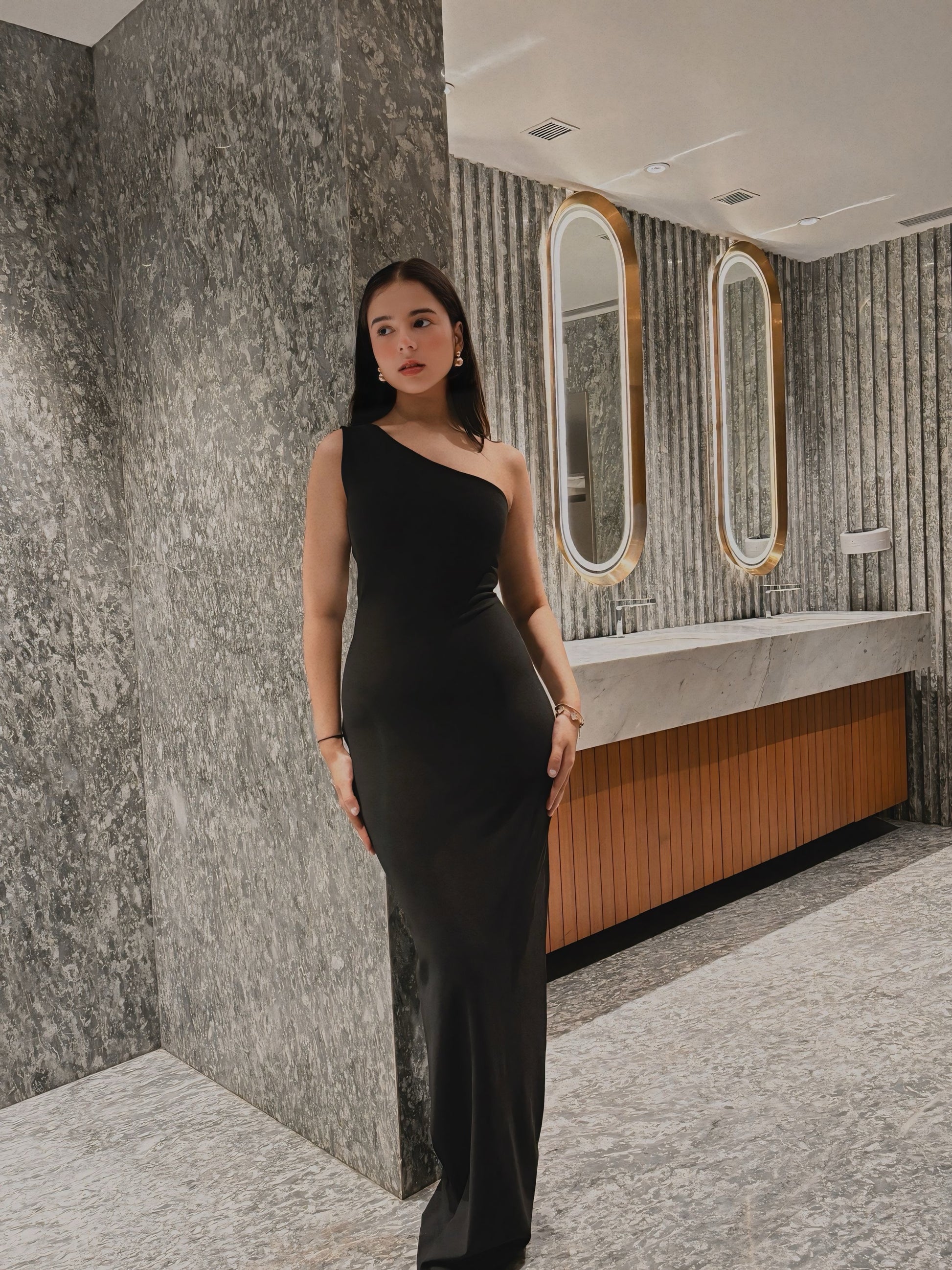 A timeless classic with a modern twist — the Georgia Dress is crafted in luxurious Scuba Georgette that sculpts your silhouette while offering a smooth, comfortable fit. The one-shoulder design and flattering floor-length hem make it the perfect statement piece for any elegant affair.