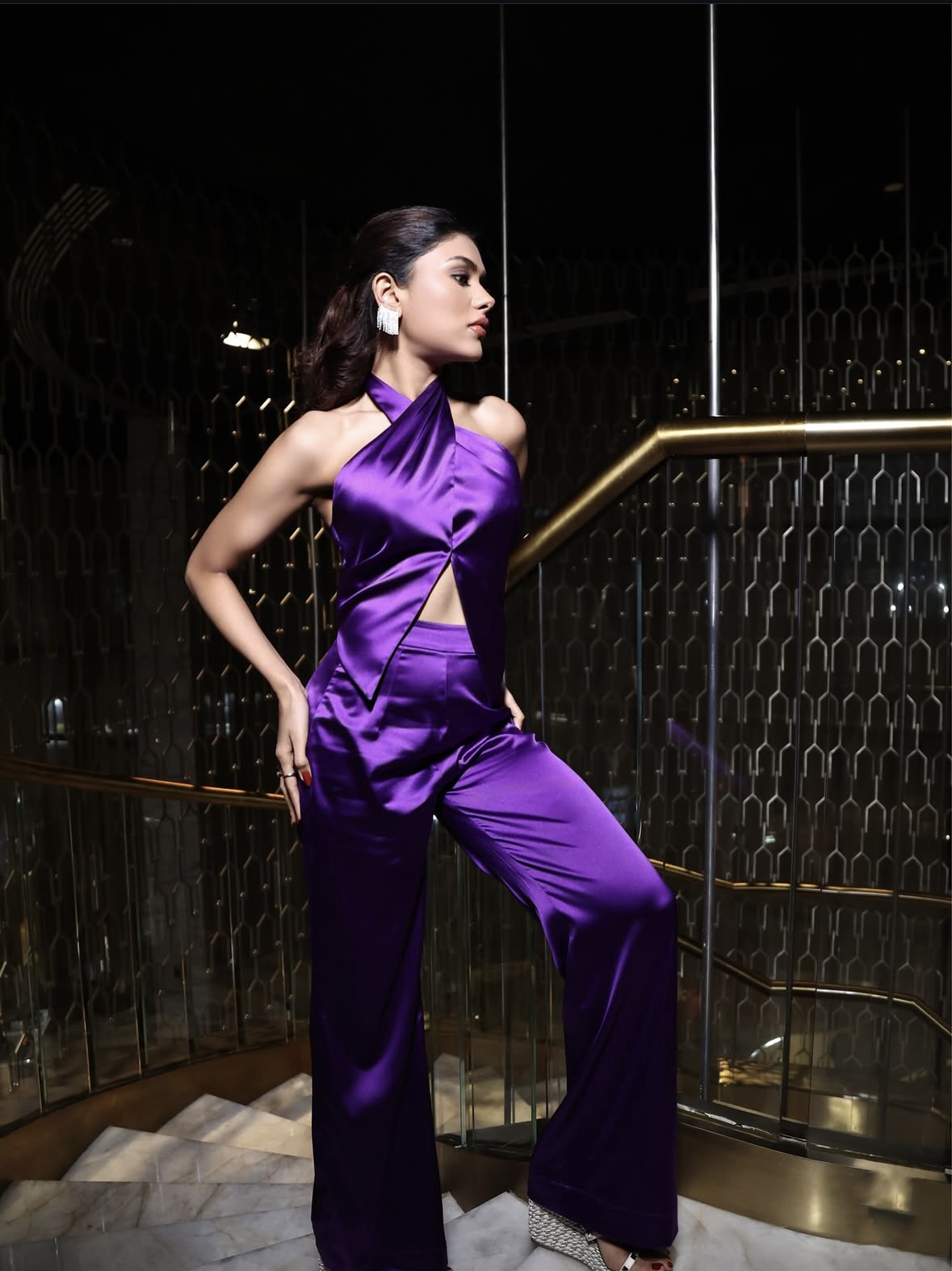 Paired with straight-fit satin pants, this set is perfect for everything from dinner dates to upscale evenings out