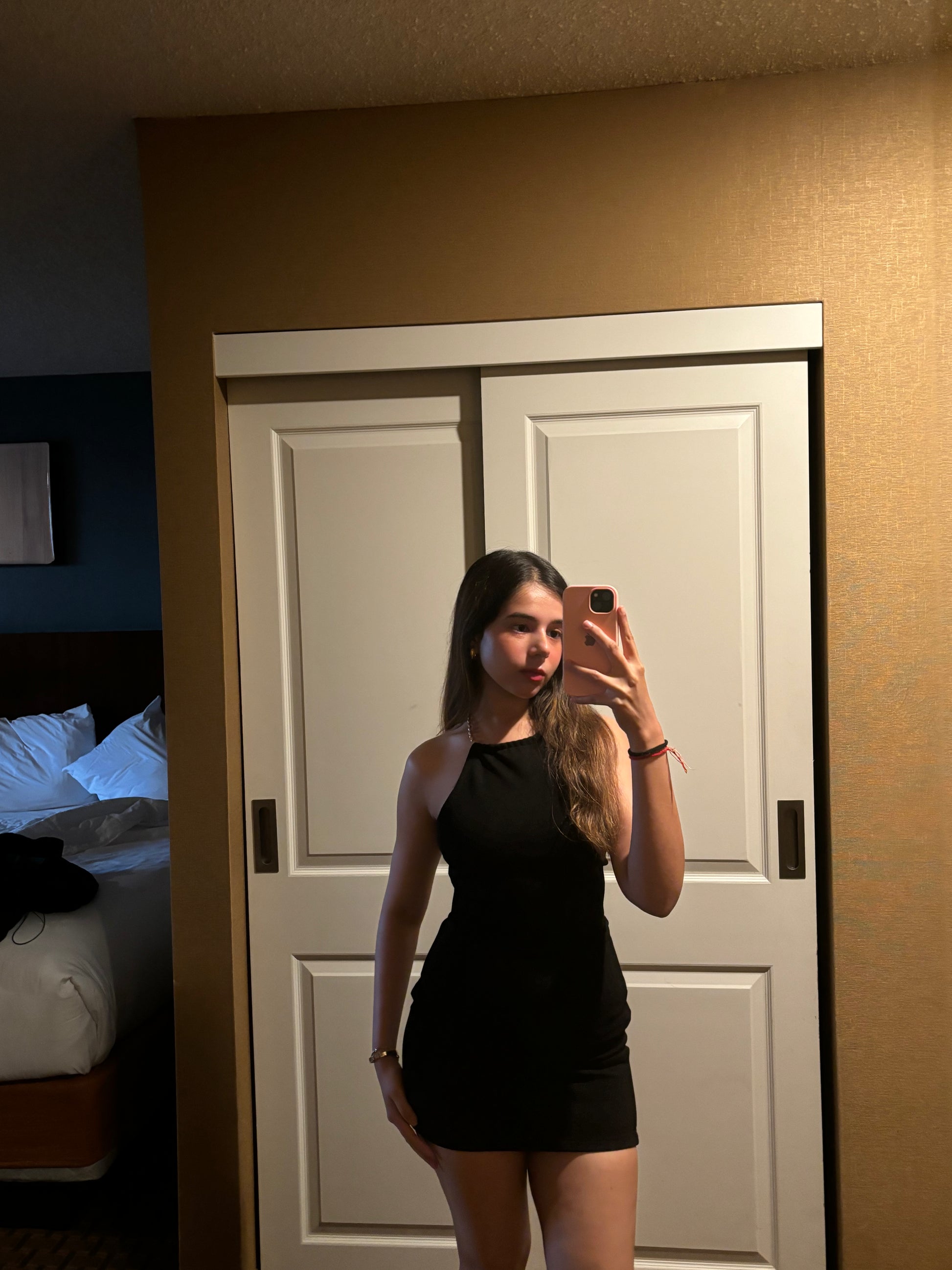 Make a statement in our Olivia Dress — a stunning blend of elegance and edge. Crafted from premium Lycra, this body-hugging mini dress features a halter neckline with an elegant gold chain detail that adds a touch of sophistication and glamour. Designed to enhance your silhouette, the Olivia is your go-to for summer parties, vacations, or chic brunches.